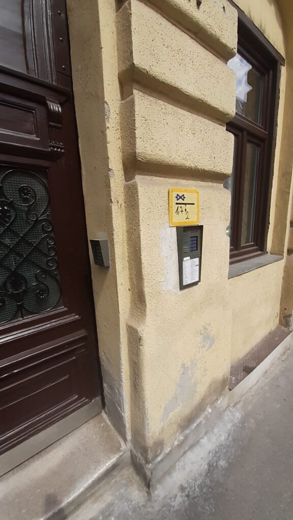 After you entered main gate, the apartment will be across the inner yard, on the left corner on the 1st floor.