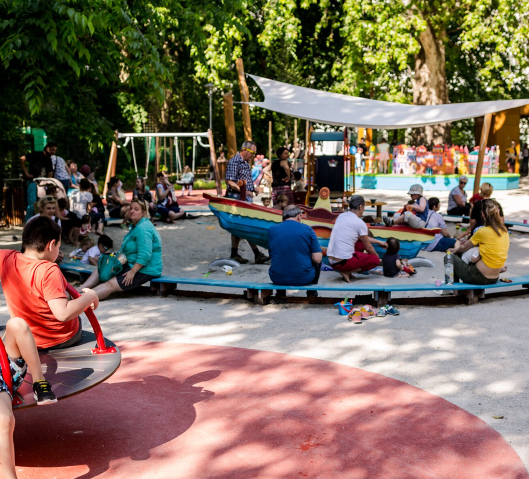 The main playgound is located in the south-east part of the City Garden, on the intersection of Dózsa György Road and Ajtósi Dürer Row. It will be easily accessible from all the neighbouring pathways, with five entrances and a 1.5-metre, specially designed fence.